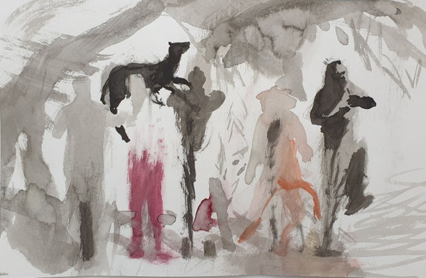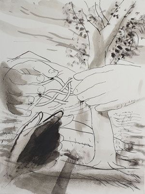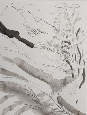 Druckvorlagen: 11 Tuschezeichnungen auf Bütten, 2025, je 22x16,5cm und ein Querformat 22x33cm.