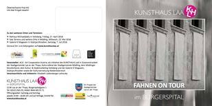 Wanderausstellung mit Fahnen von 98 KünstlerInnen an sechs Stationen