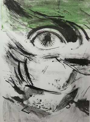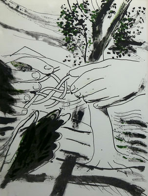 Cover: Bleistiftzeichnung, invertiert, Schmuckfarbe.