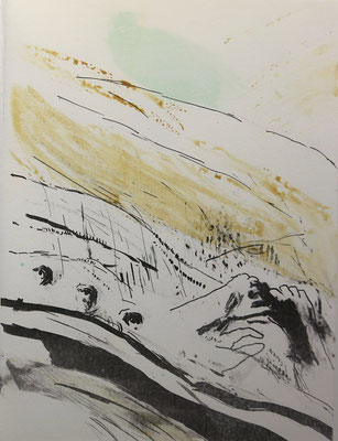 Die Aquarelle sind Vorlagen für drei- bis vierfarbige Offset-Lithographien, wobei sich die Auswahl der 11 umgesetzten Farbdrucke "zufällig" nach dem vorgegebenen Text-Bild-Umbruch ergab.